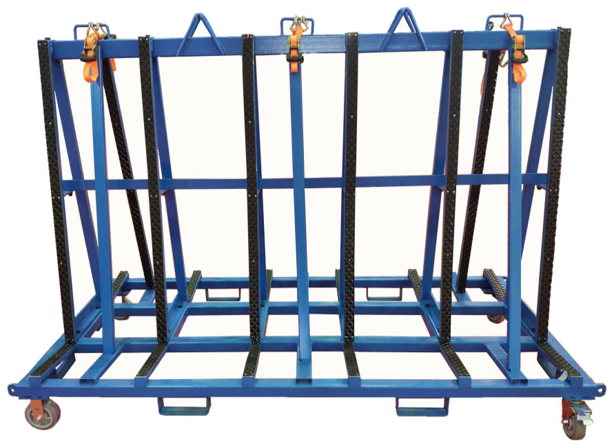 此設(shè)計(jì)用于廠區(qū)內(nèi)外的板材運(yùn)輸和儲(chǔ)存,支架表面覆蓋一層橡膠層,保護(hù)板材免于刮傷。